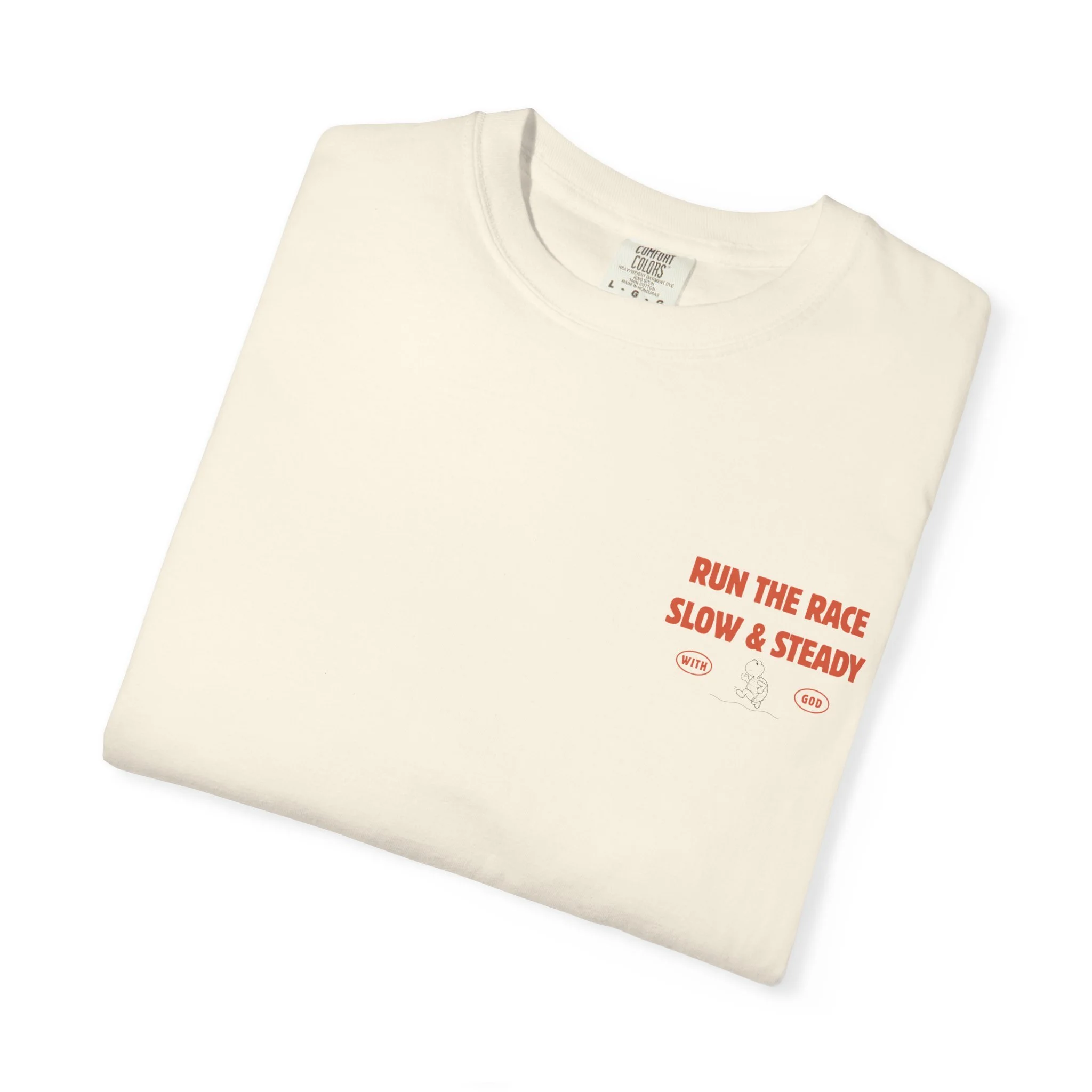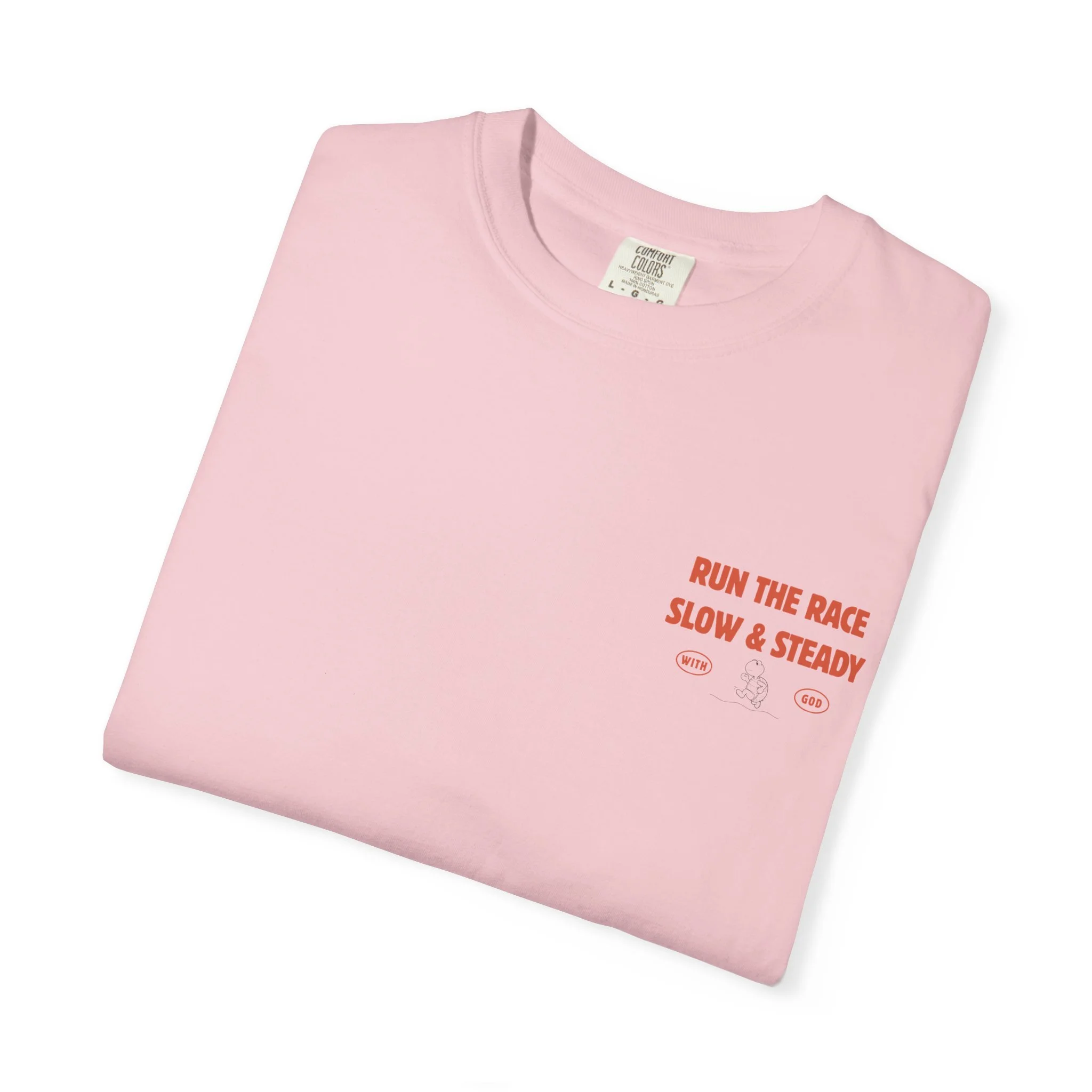 A reminder to let go of distractions and move forward with purpose. Rooted in faith and designed with intention, this shirt speaks without saying too much.